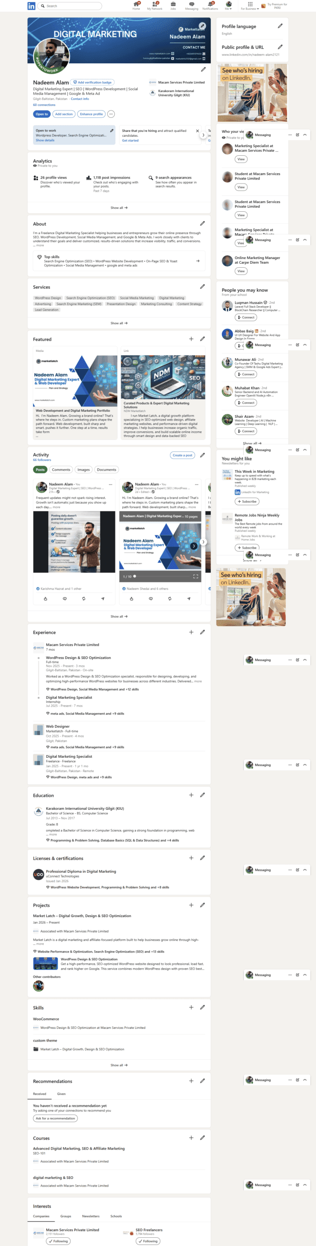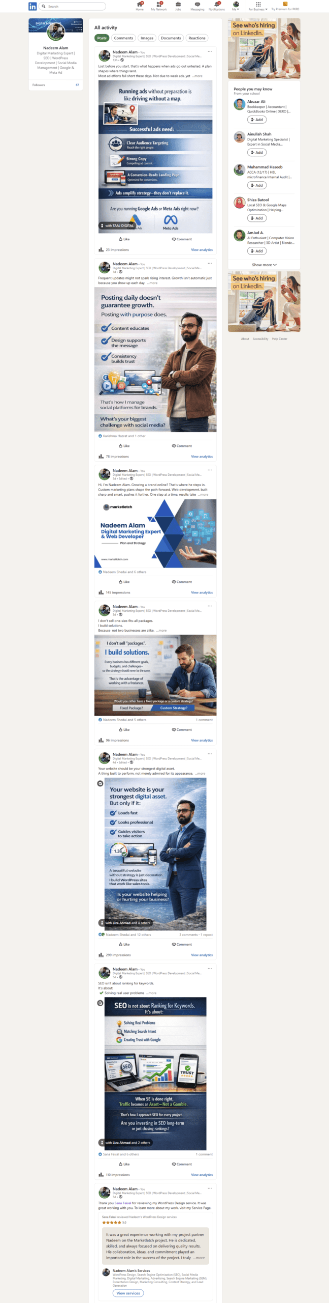 I optimized my LinkedIn profile to professionally represent my digital marketing skills and began posting content related to digital marketing and SEO.