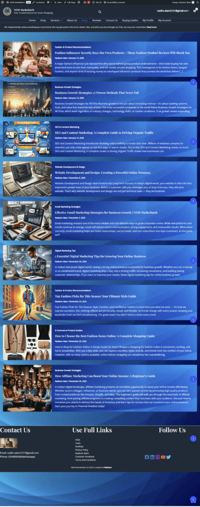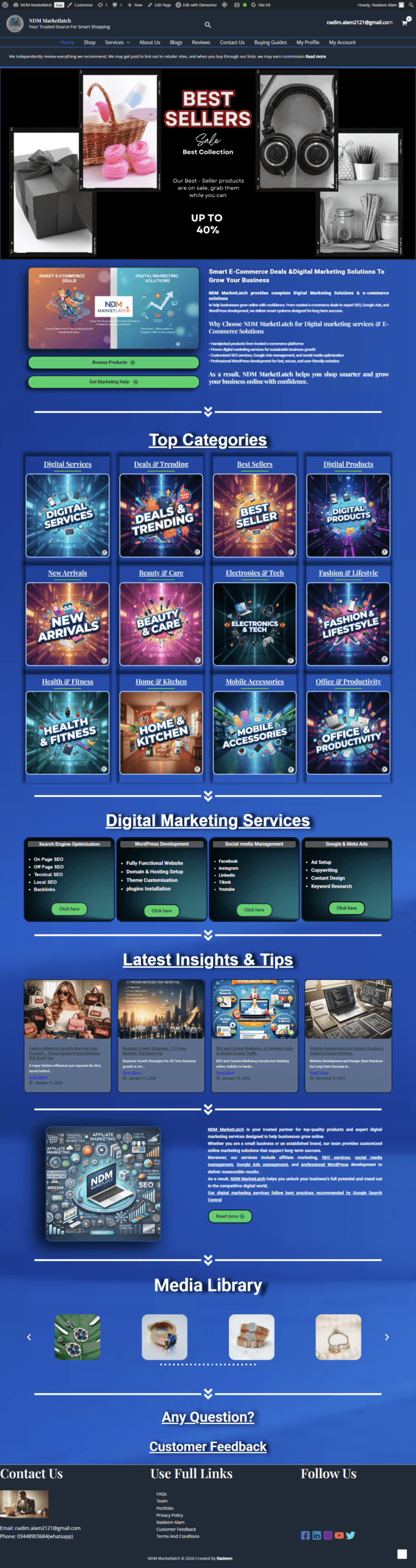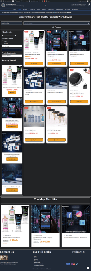 I designed and developed a complete WordPress website starting from domain purchase to final optimization. The website was created on a demo subdomain and built for two main purposes: promoting affiliate products for commission-based marketing and offering digital marketing services.