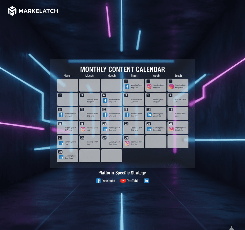 Platform-Specific Strategy:Tailored content for Instagram, TikTok, LinkedIn, Facebook, and YouTube.